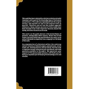 This work has been selected by scholars as being culturally important, and is part of the knowledge base of civilization as we know it. This work was reproduced from the original artifact, and remains as true to the original work as possible. Therefore, you will see the original copyright references, library stamps (as most of these works have been housed in our most important libraries around the world), and other notations in the work.This work is in the public domain in the United States of America, and possibly other nations. Within the United States, you may freely copy and distribute this work, as no entity (individual or corporate) has a copyright on the body of the work.As a reproduction of a historical artifact, this work may contain missing or blurred pages, poor pictures, errant marks, etc. Scholars believe, and we concur, that this work is important enough to be preserved, reproduced, and made generally available to the public. We appreciate your support of the preservation process, and thank you for being an important part of keeping this knowledge alive and relevant.